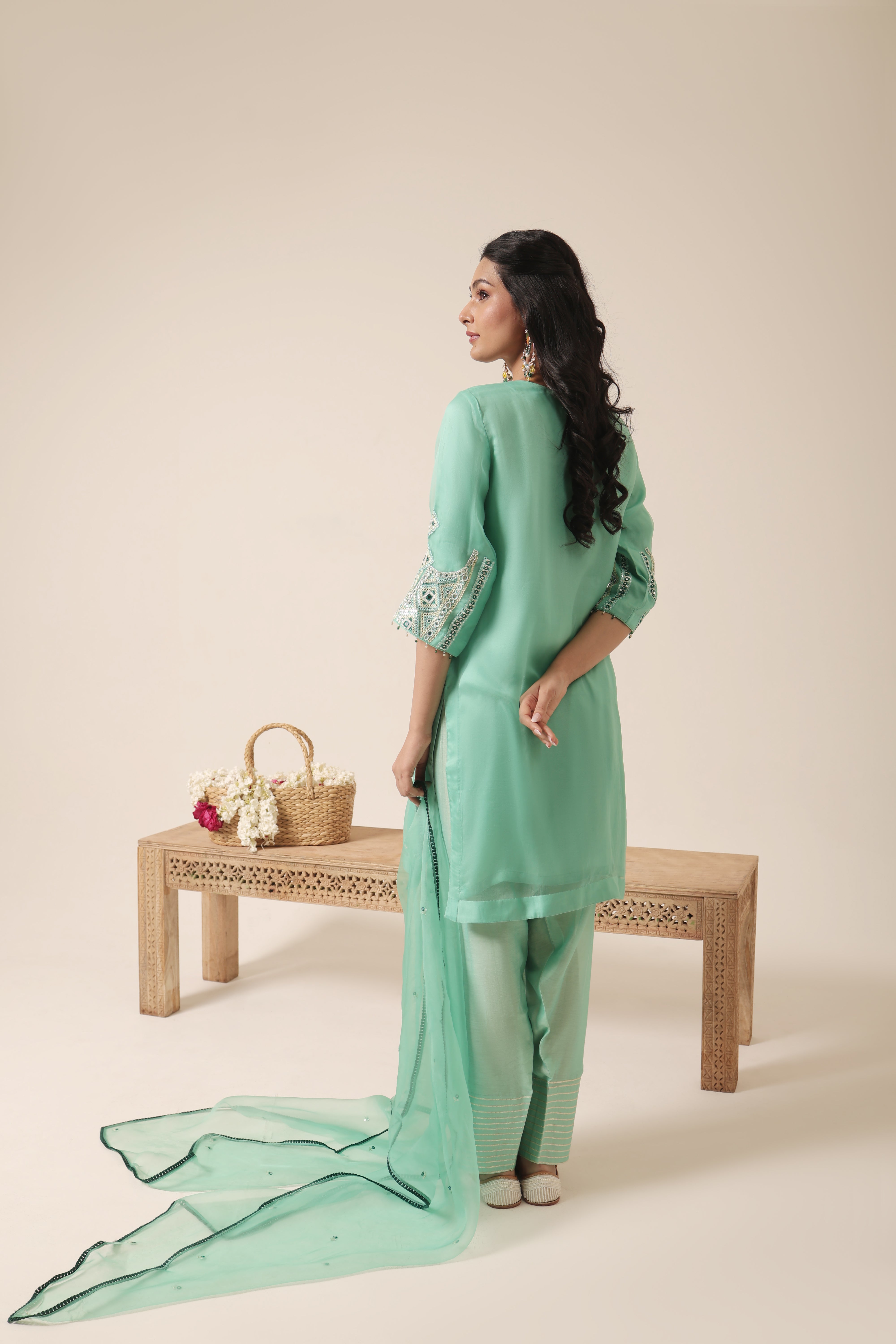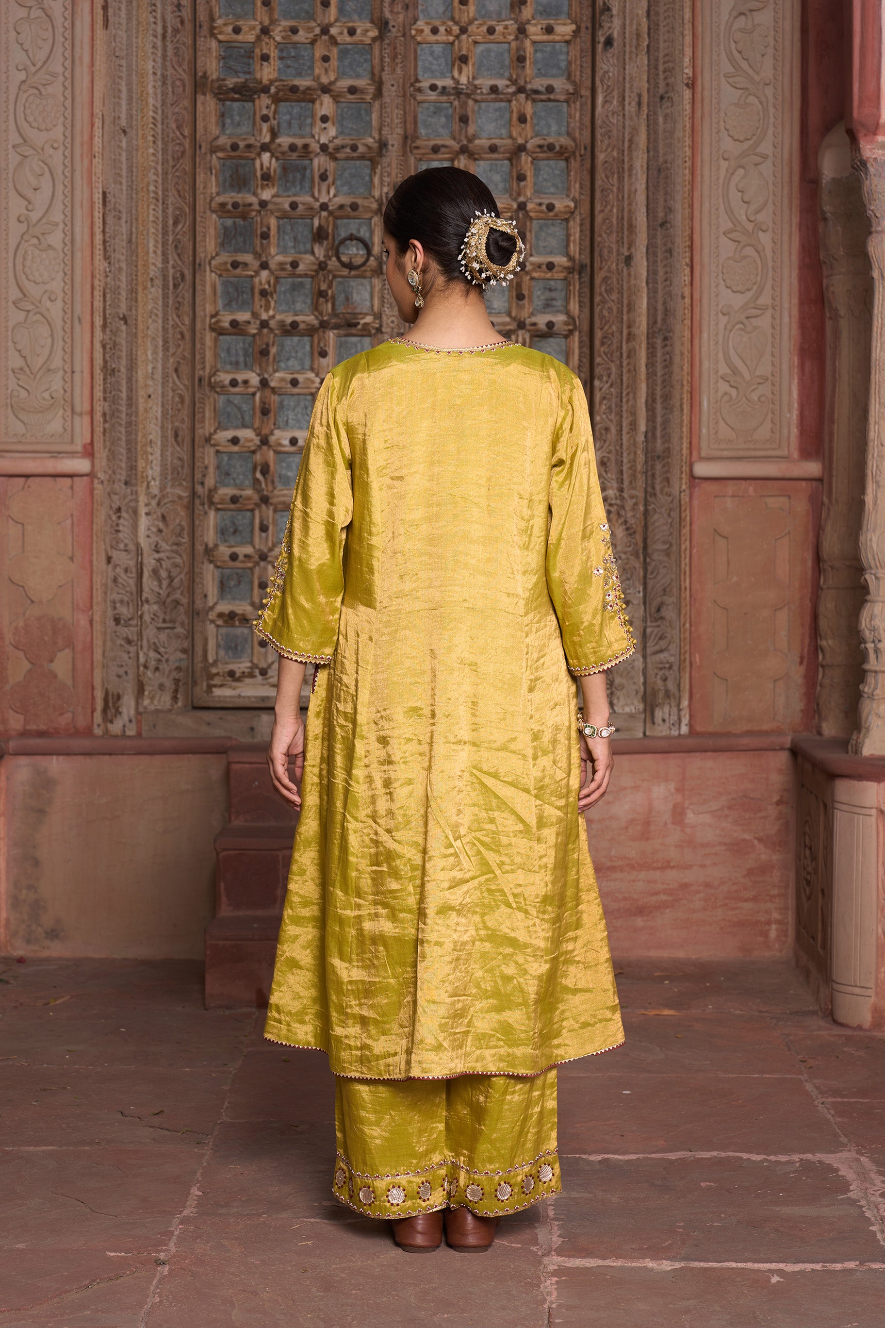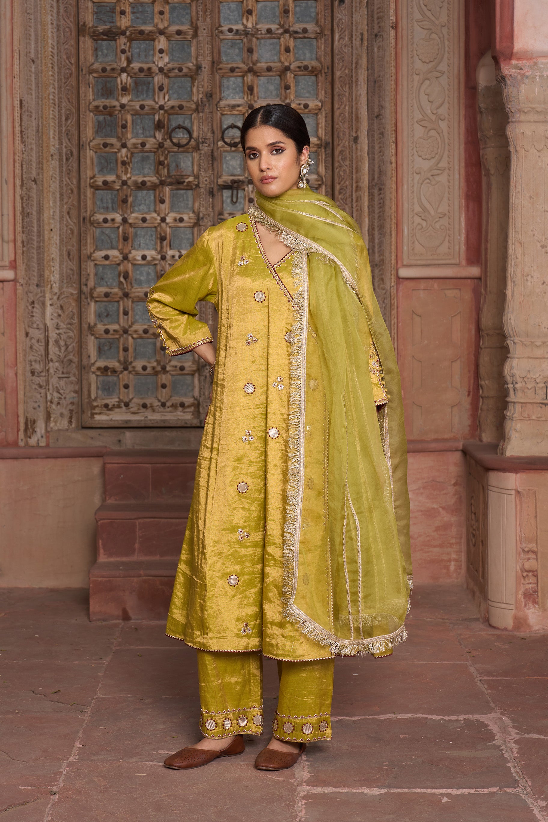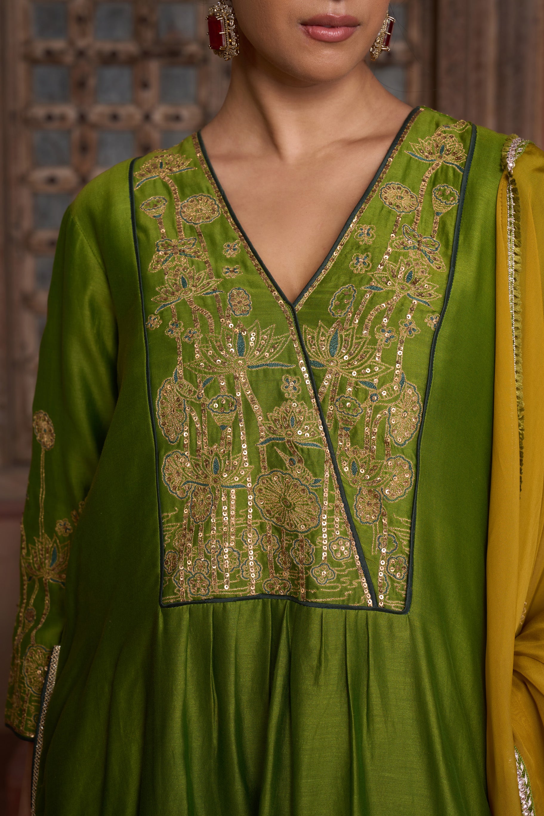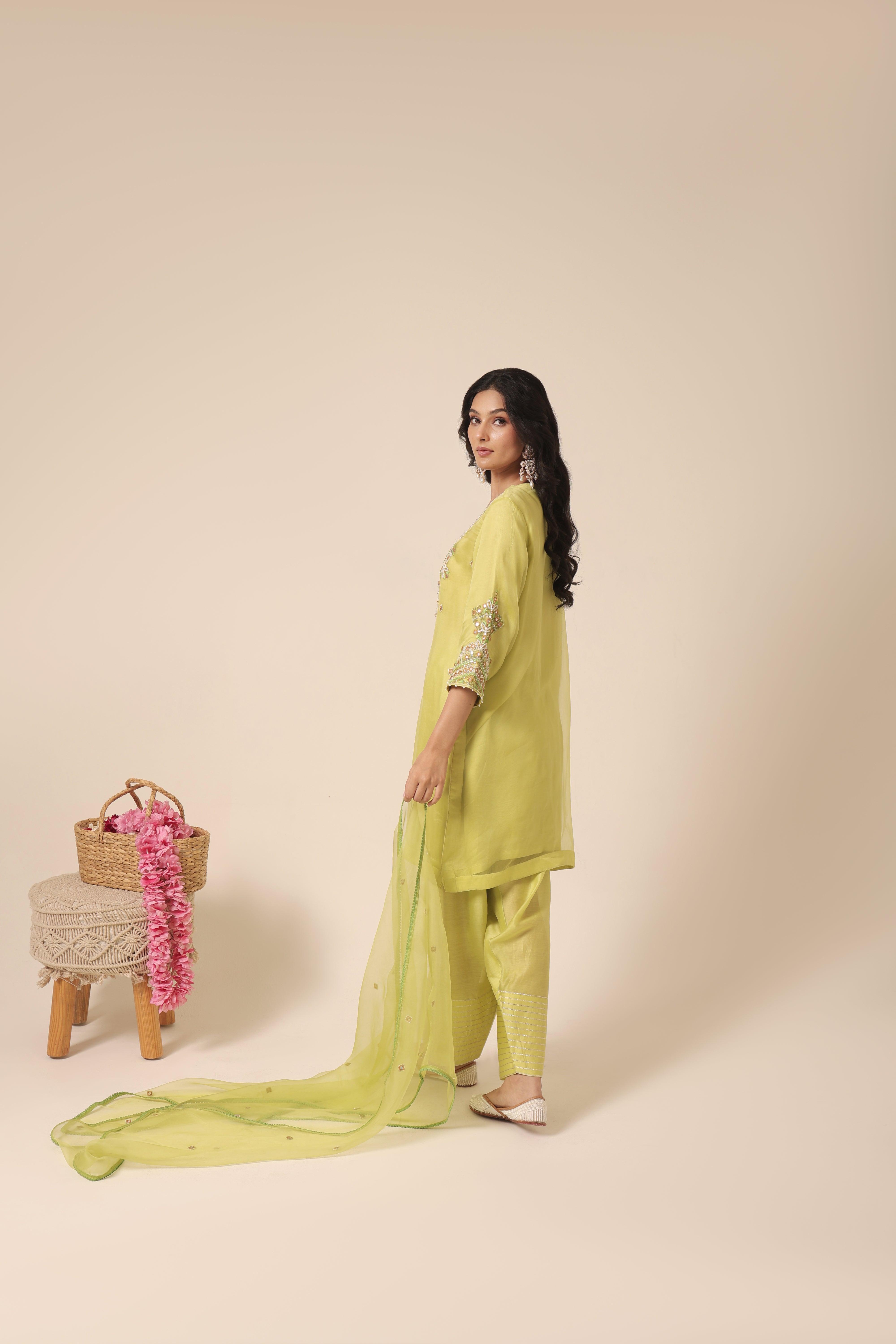 Green Silk Chanderi Kurta Set with Aari embroidery