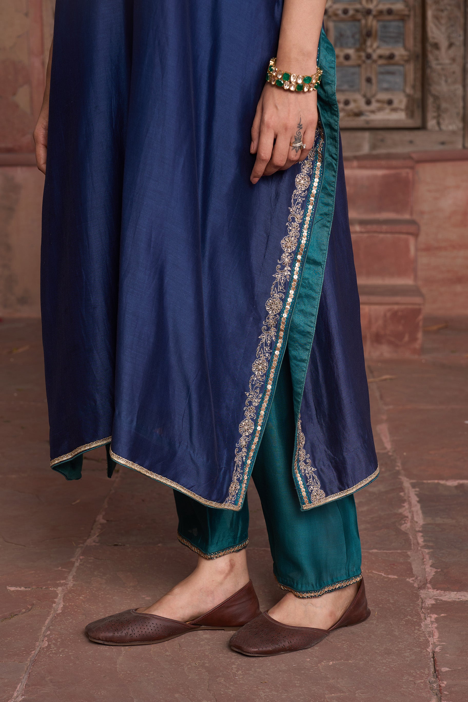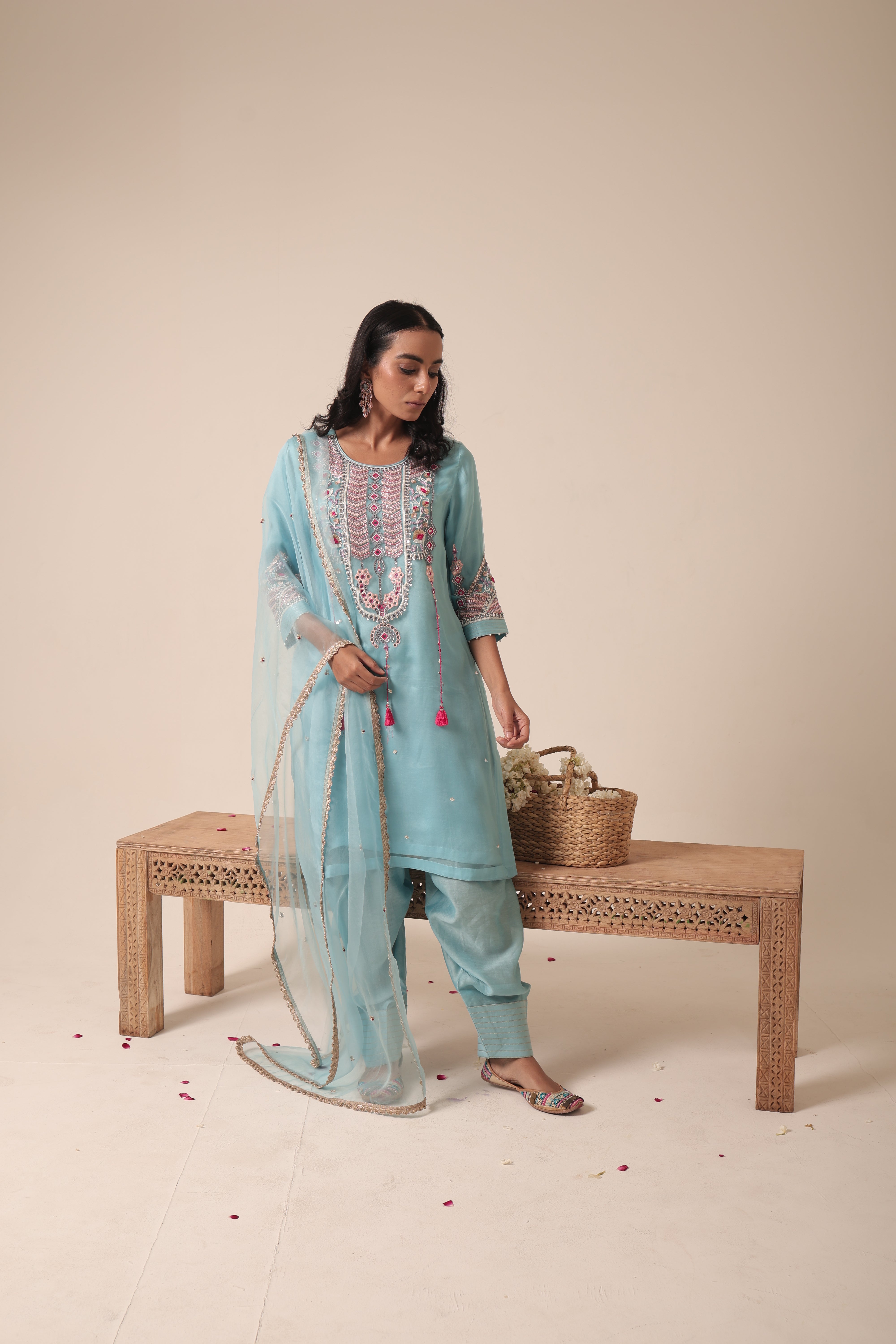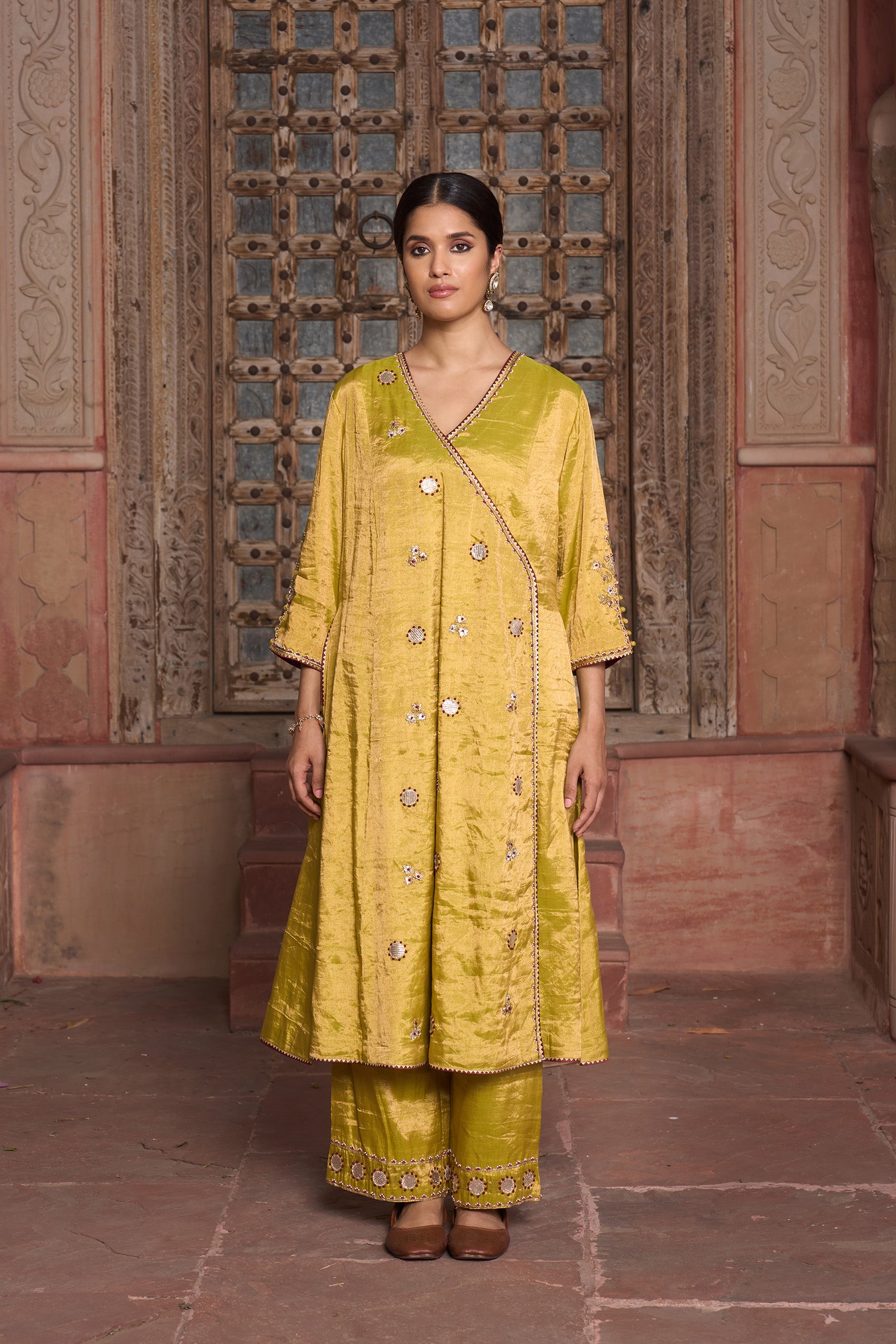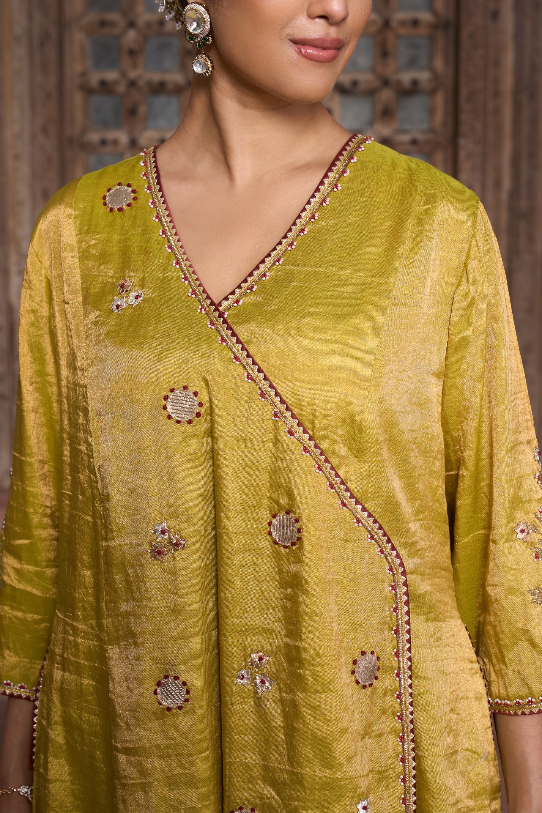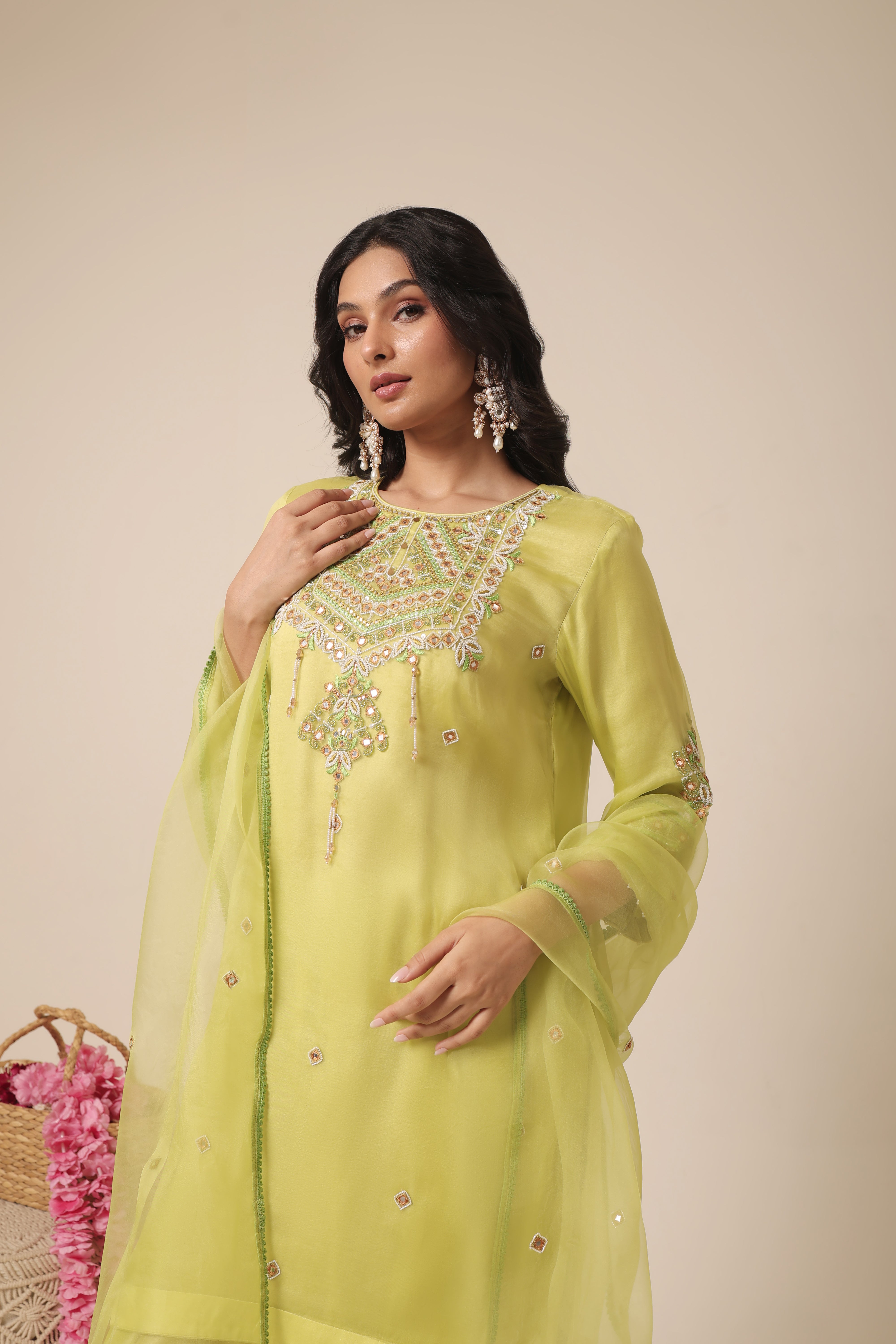 Green Silk Chanderi Kurta Set with Aari embroidery