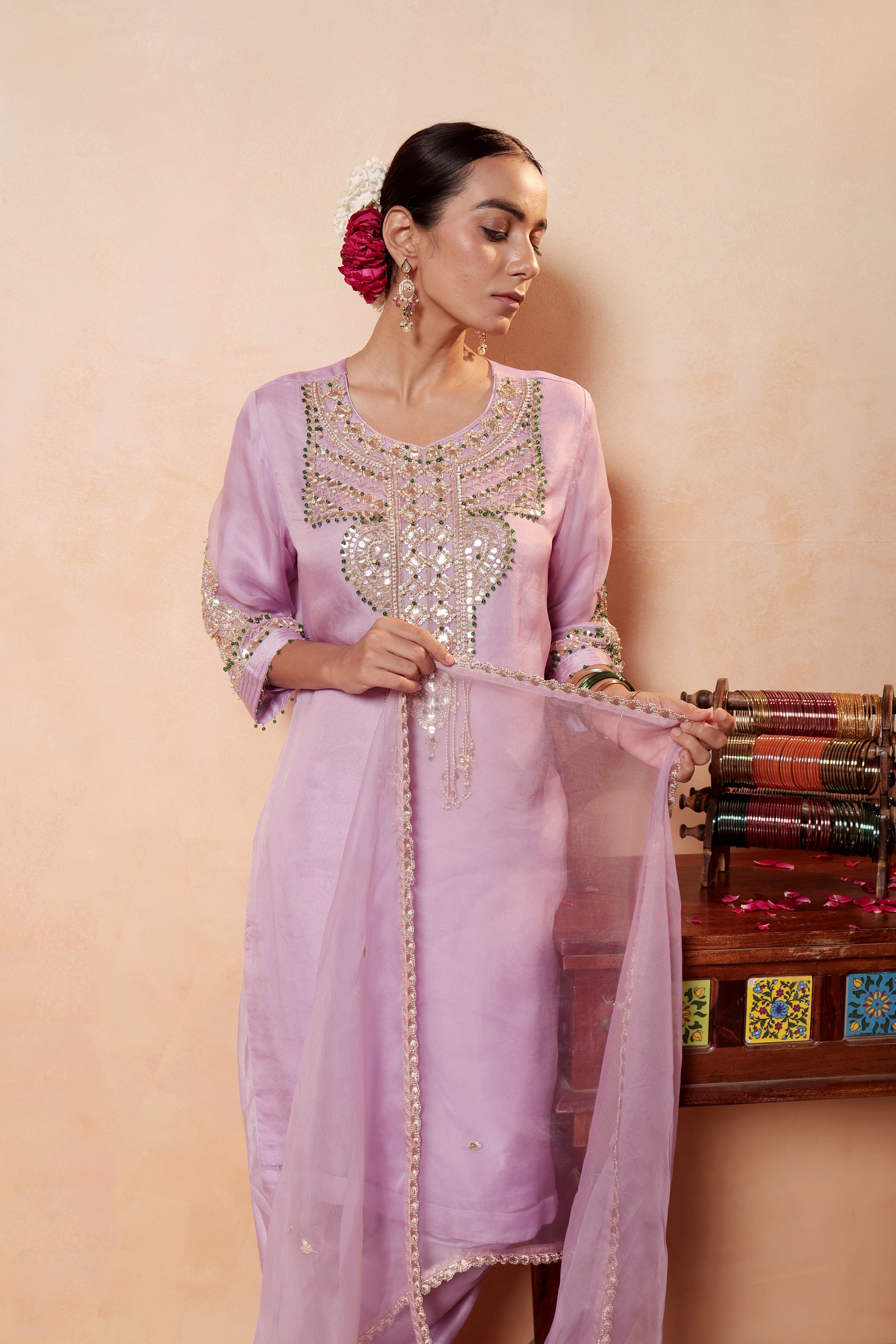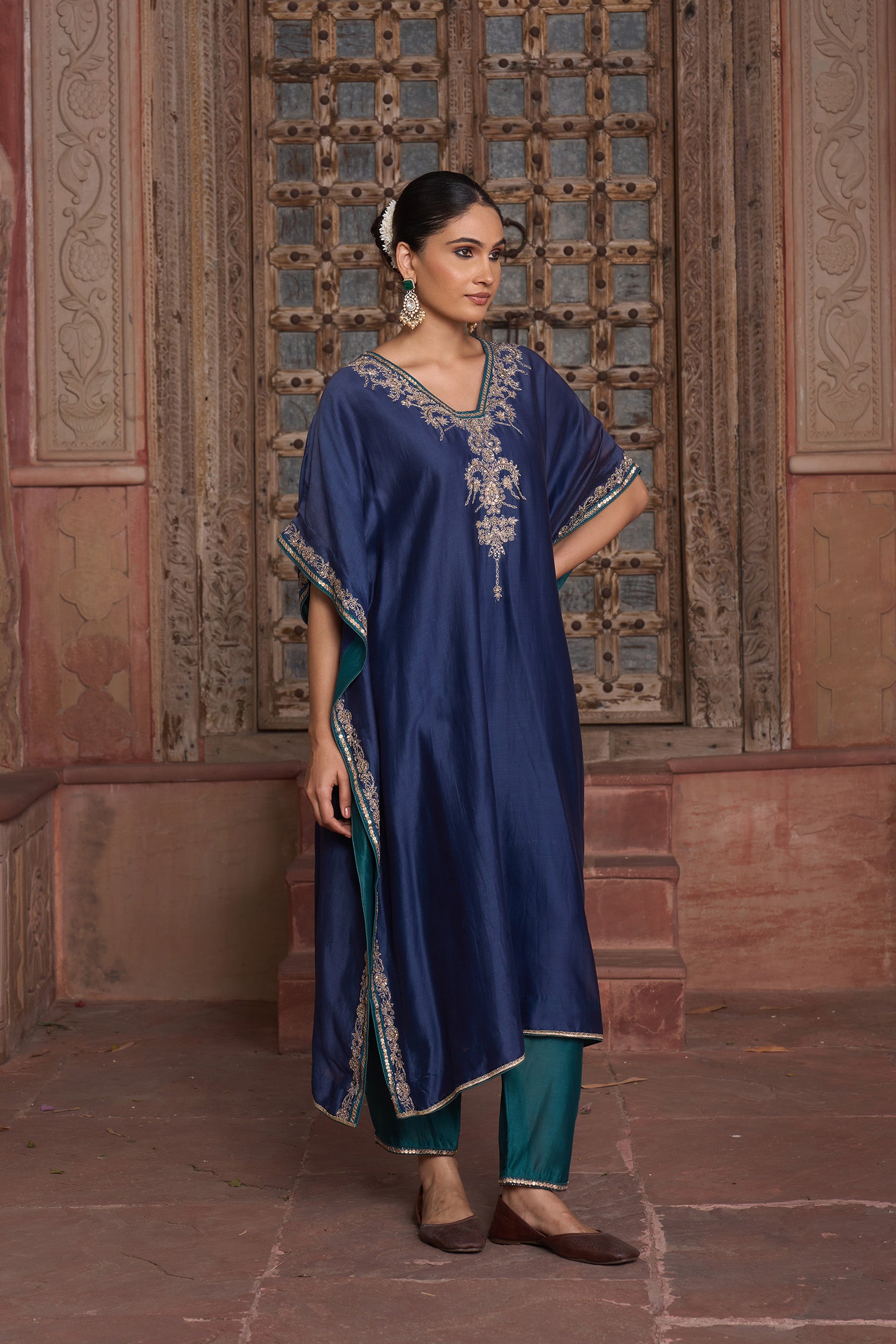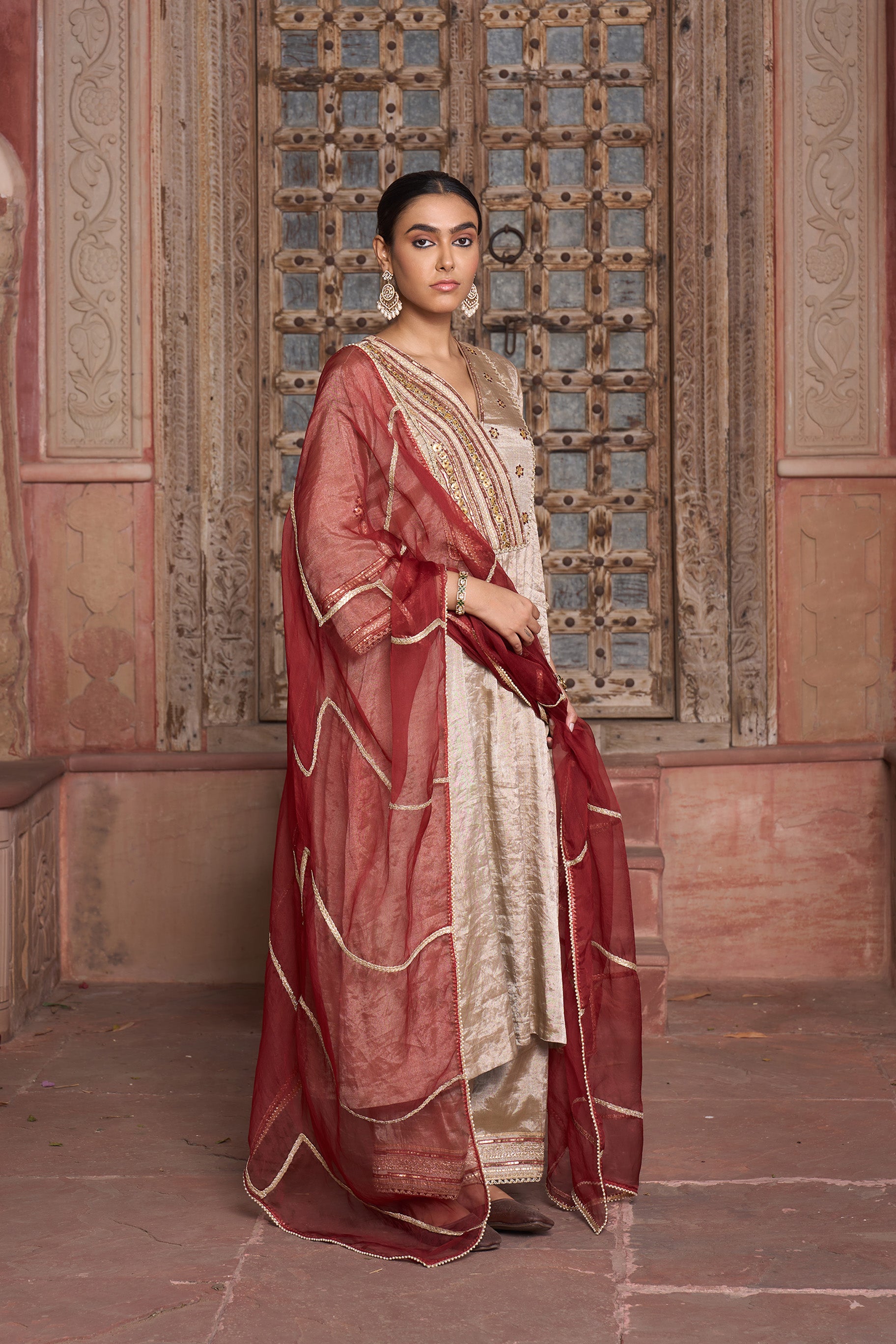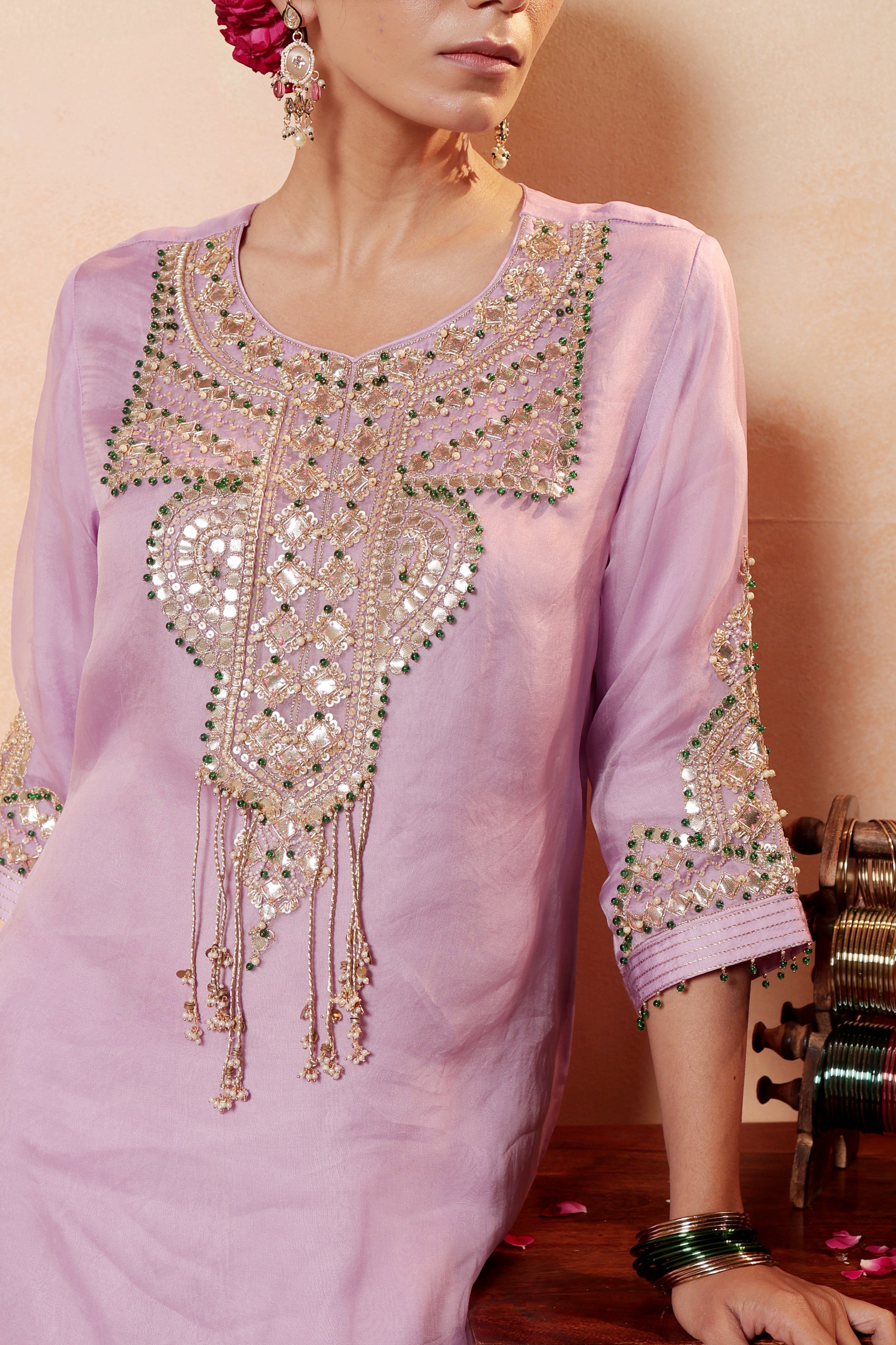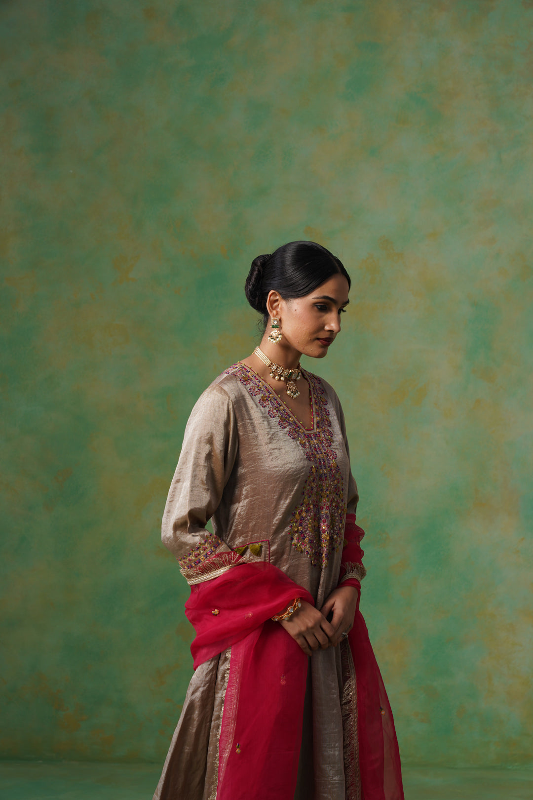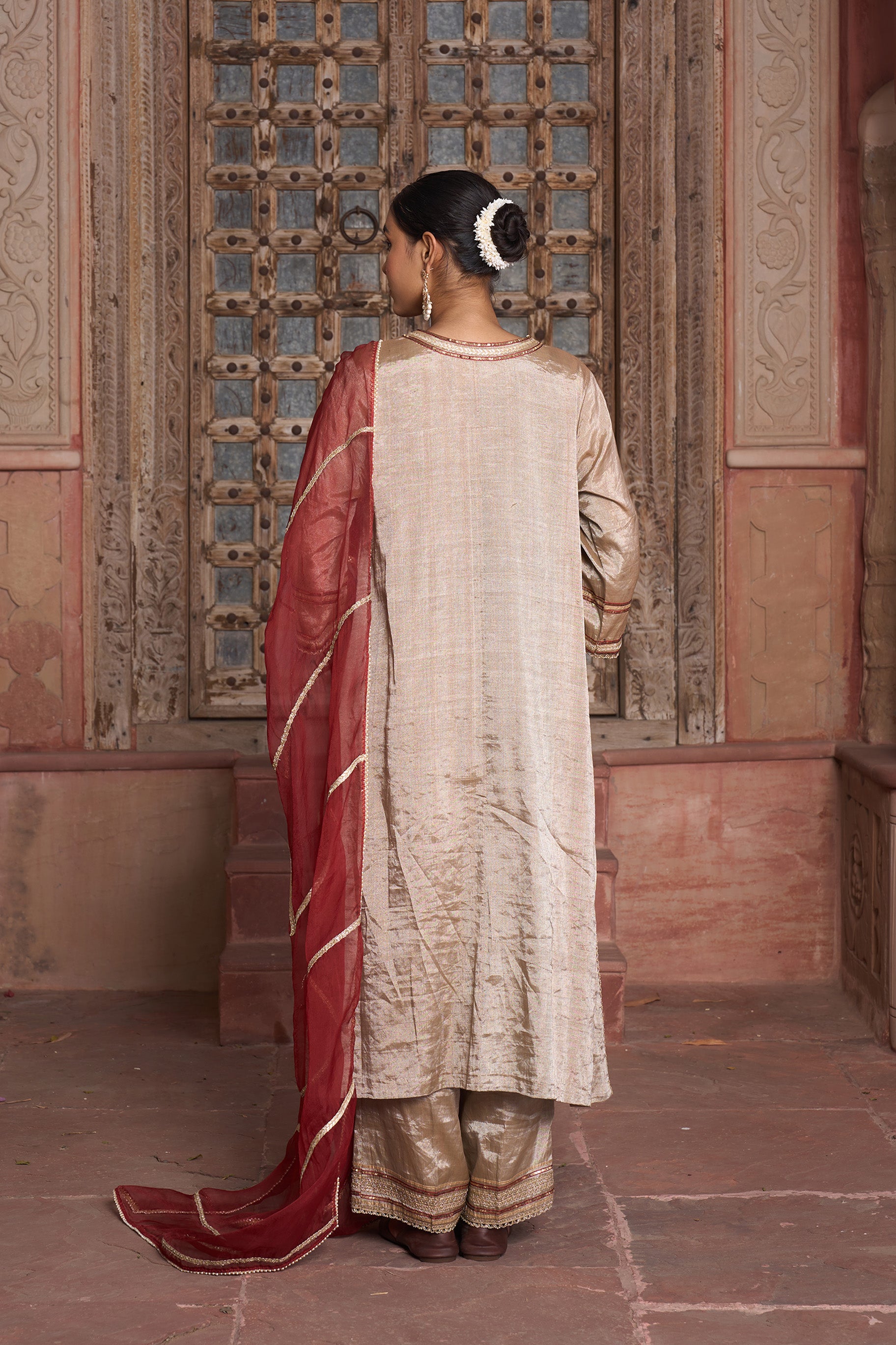 Green Silk Chanderi Kurta Set with Aari embroidery