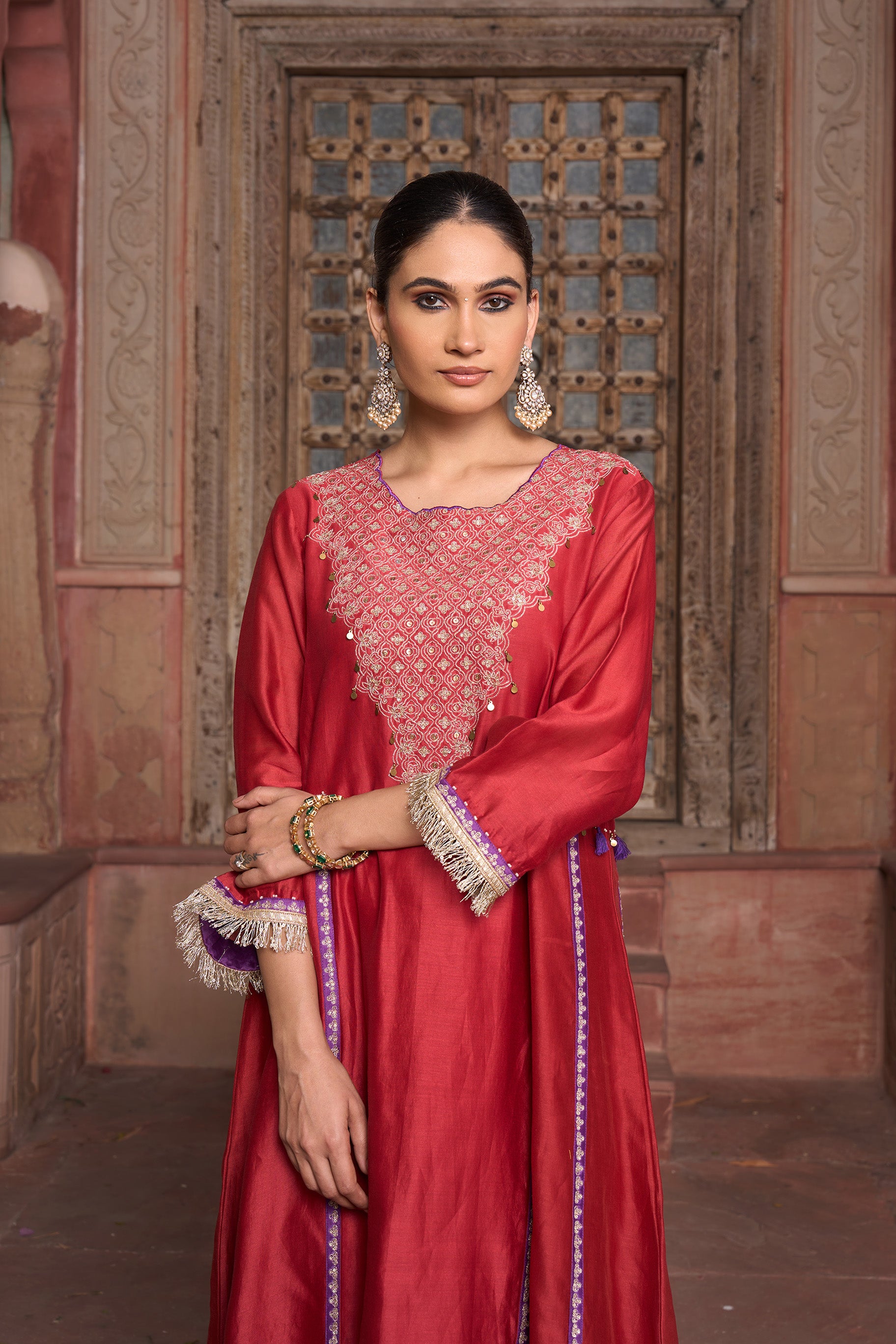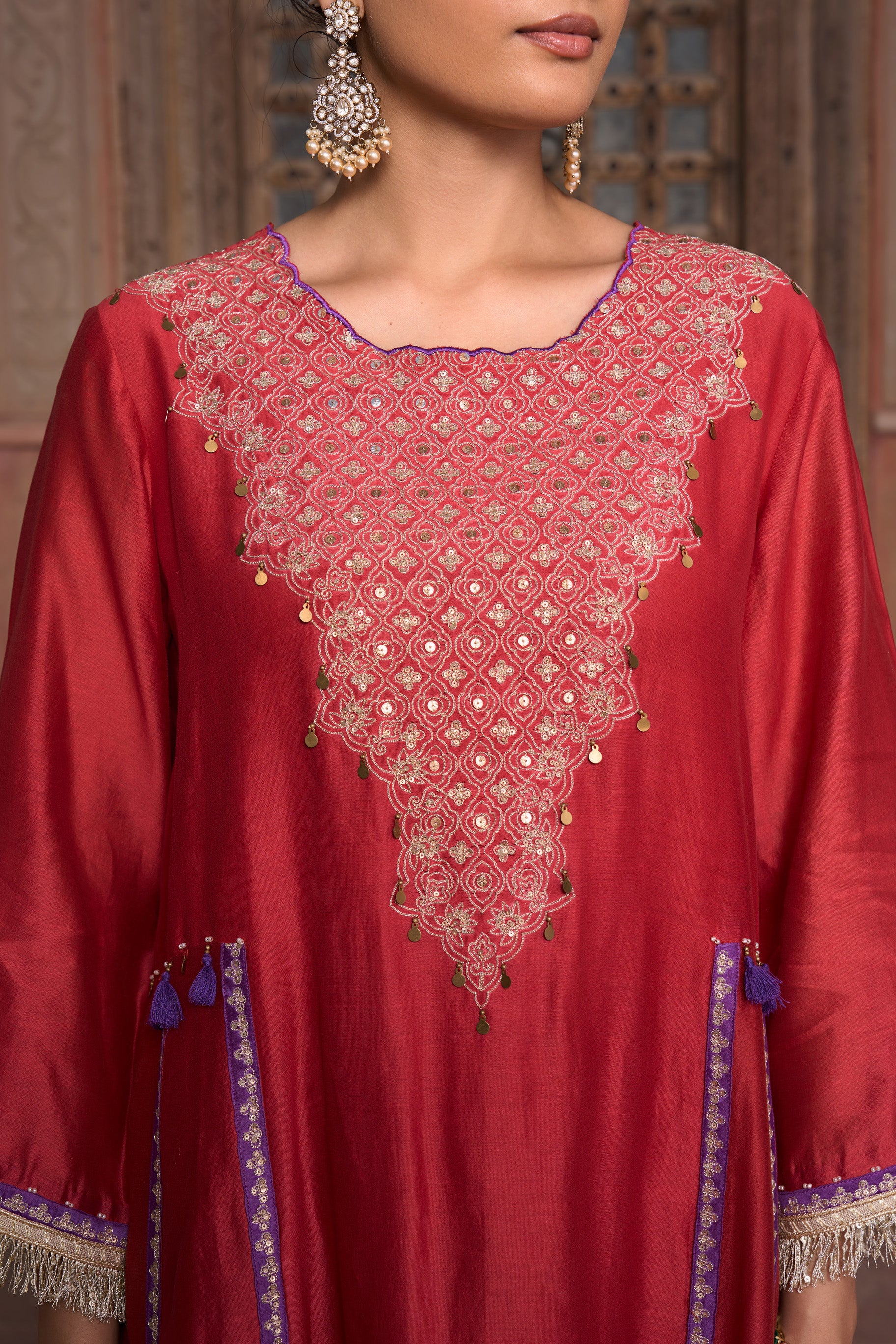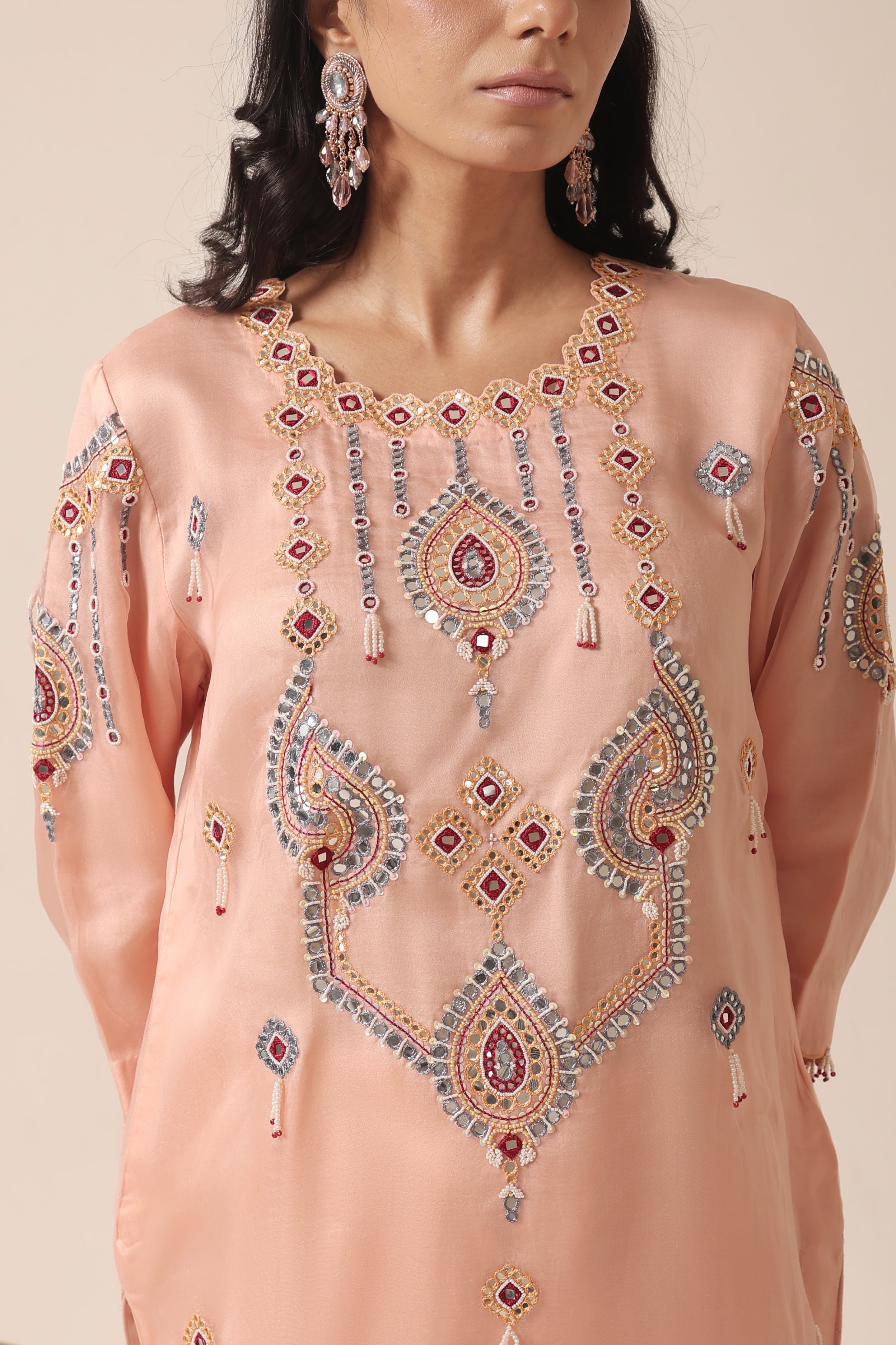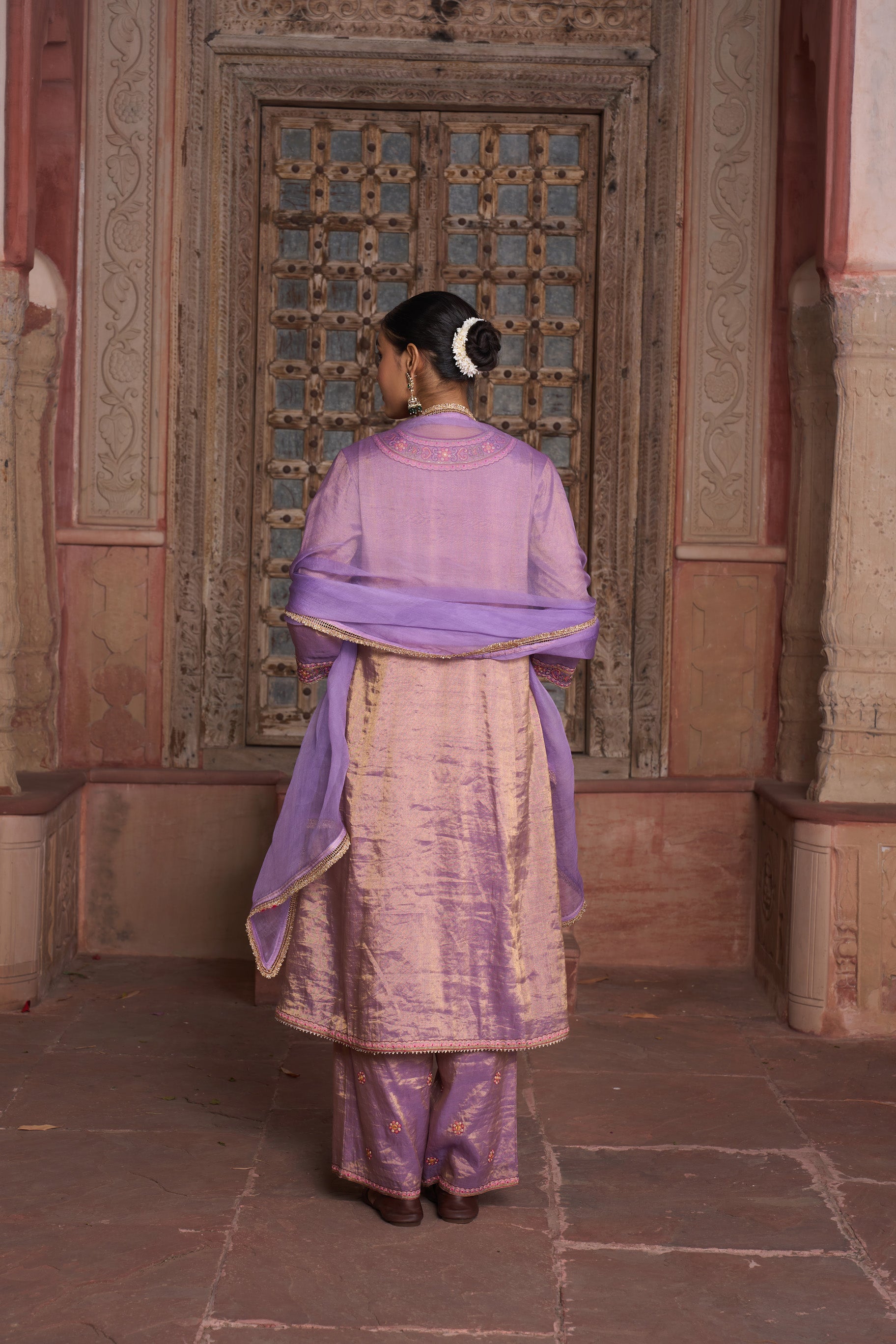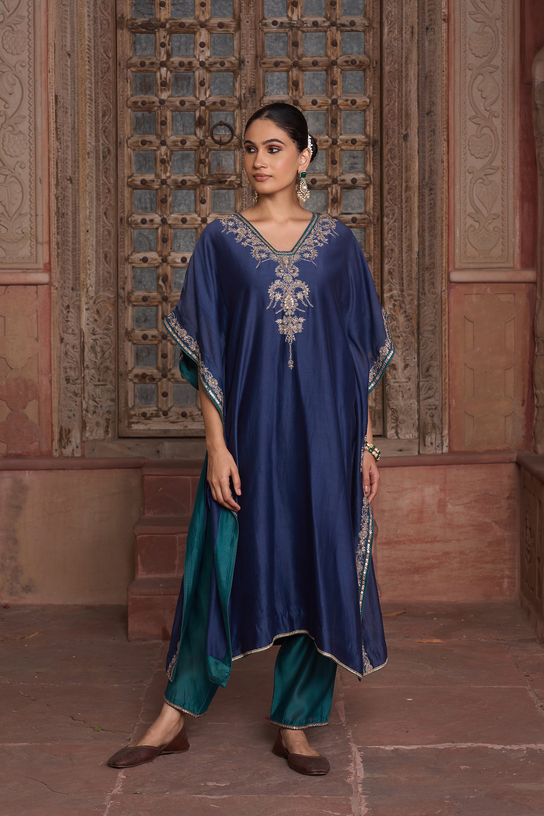Green Silk Chanderi Kurta Set with Aari embroidery
