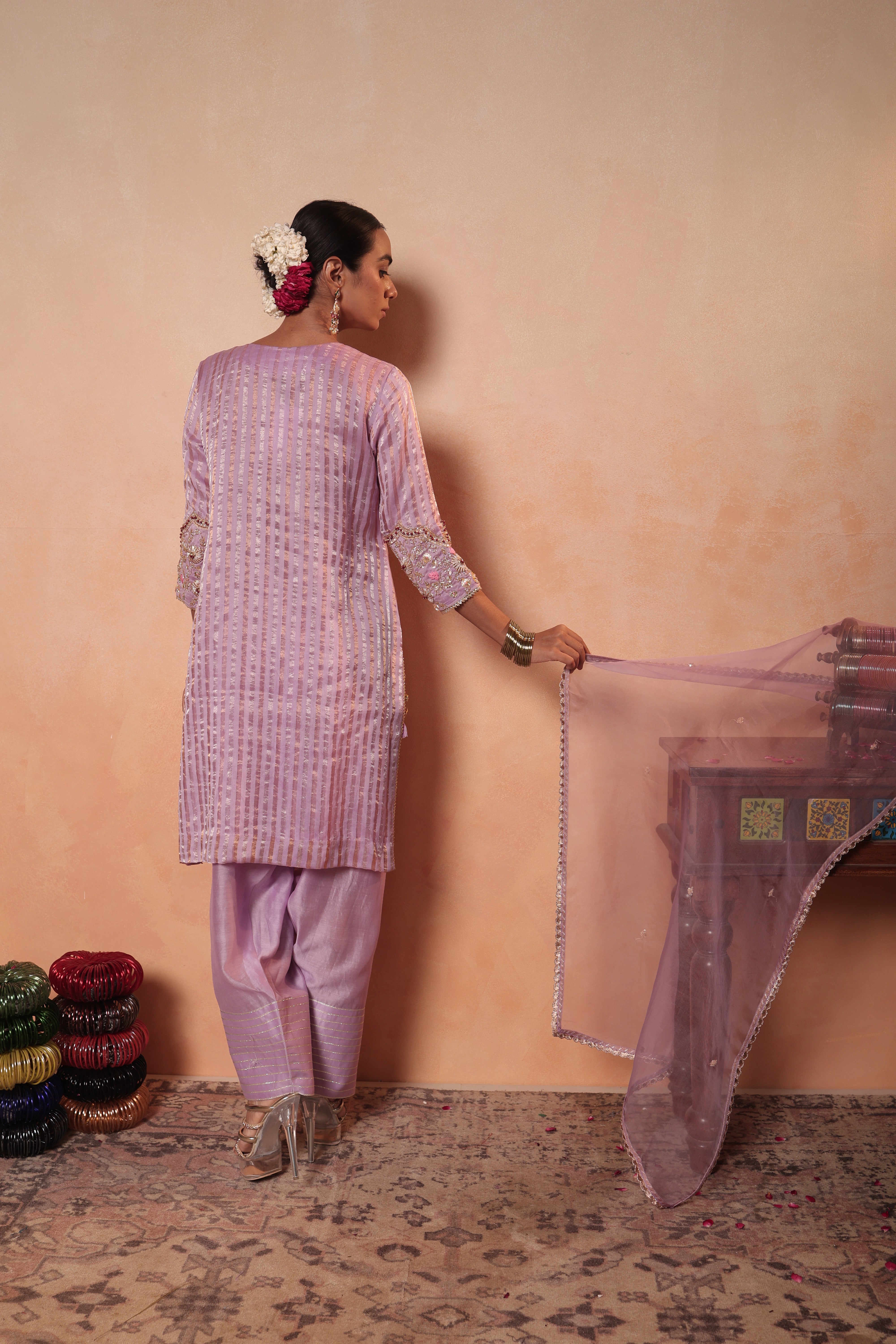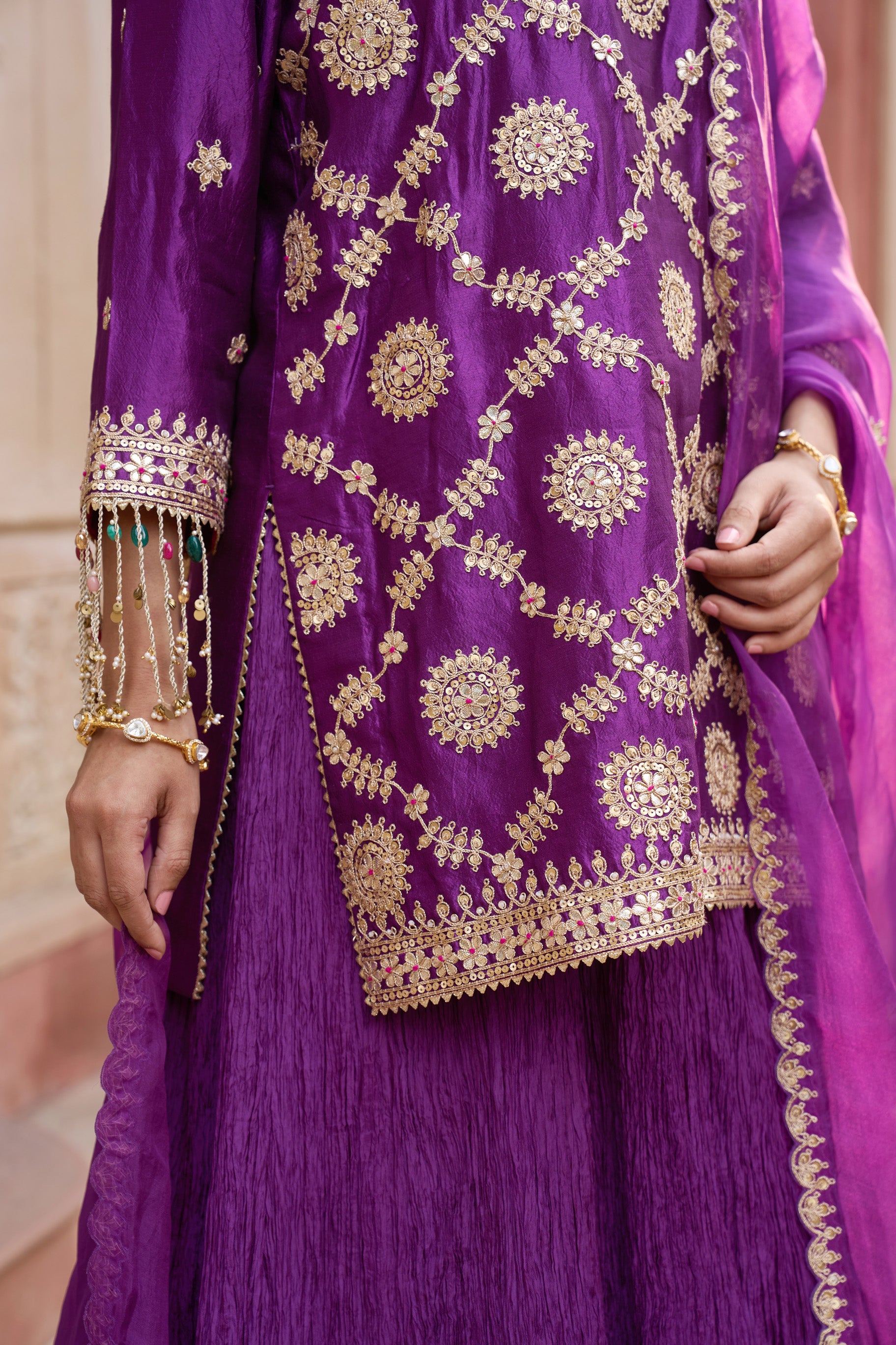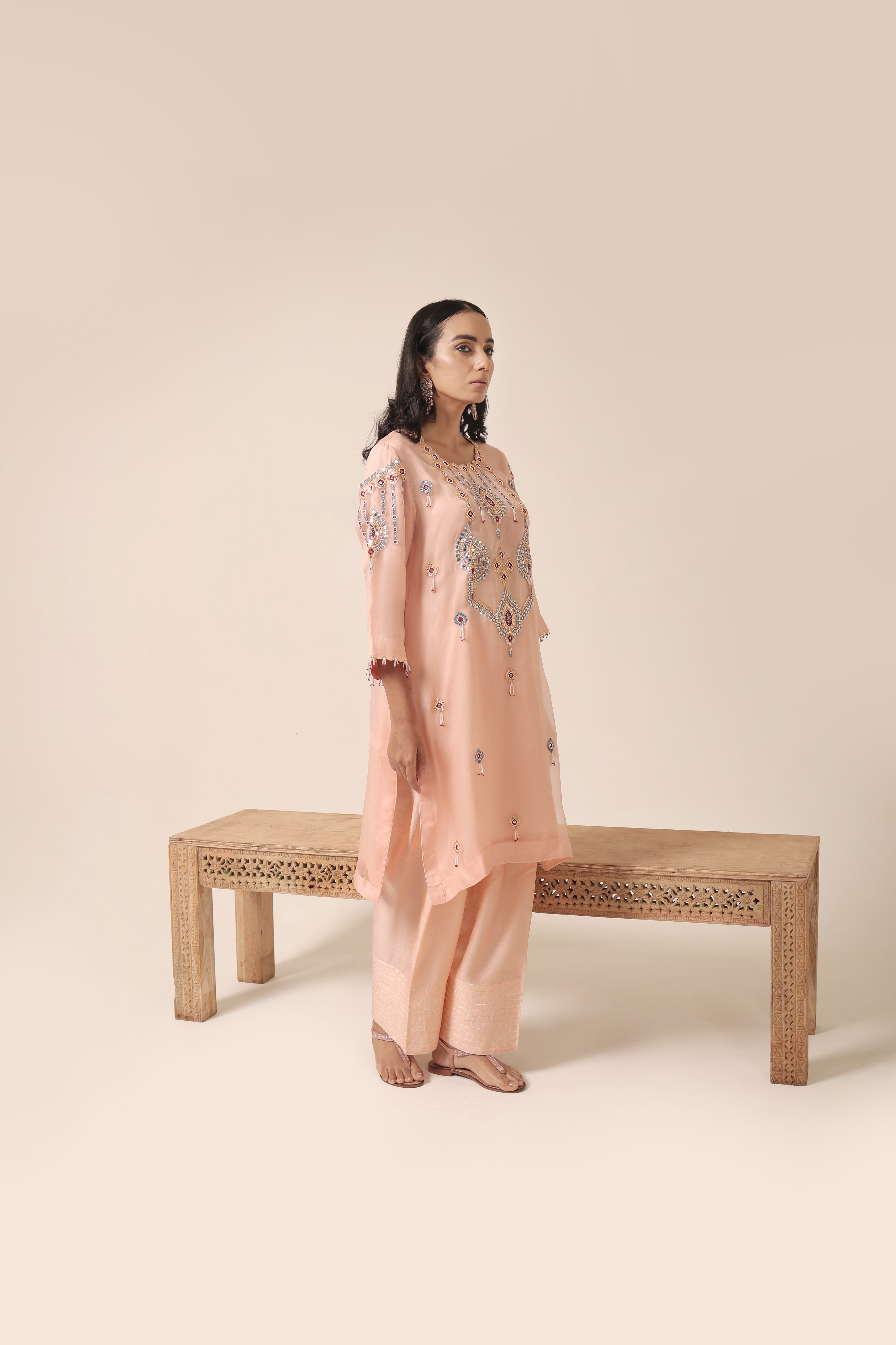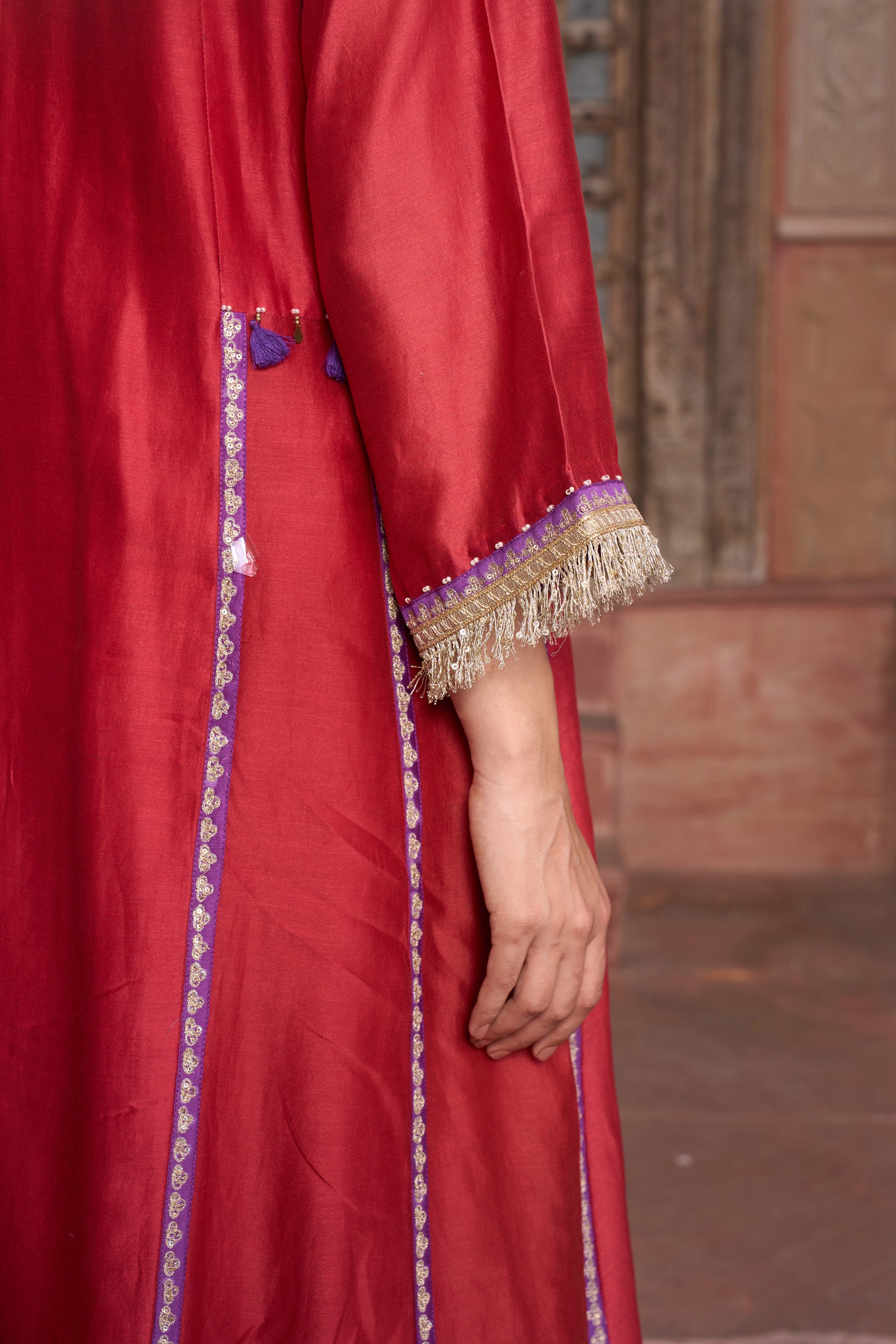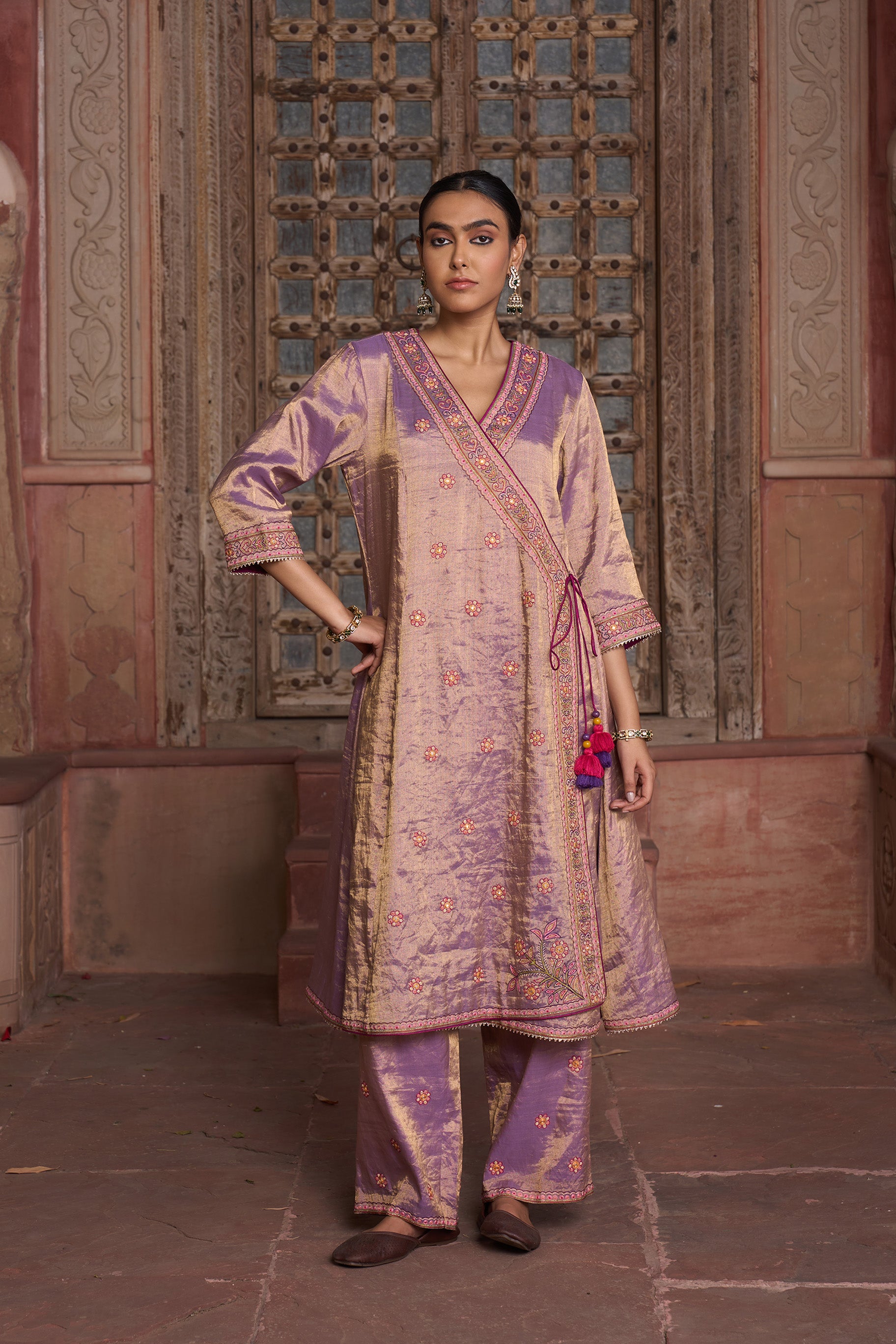 Green Silk Chanderi Kurta Set with Aari embroidery