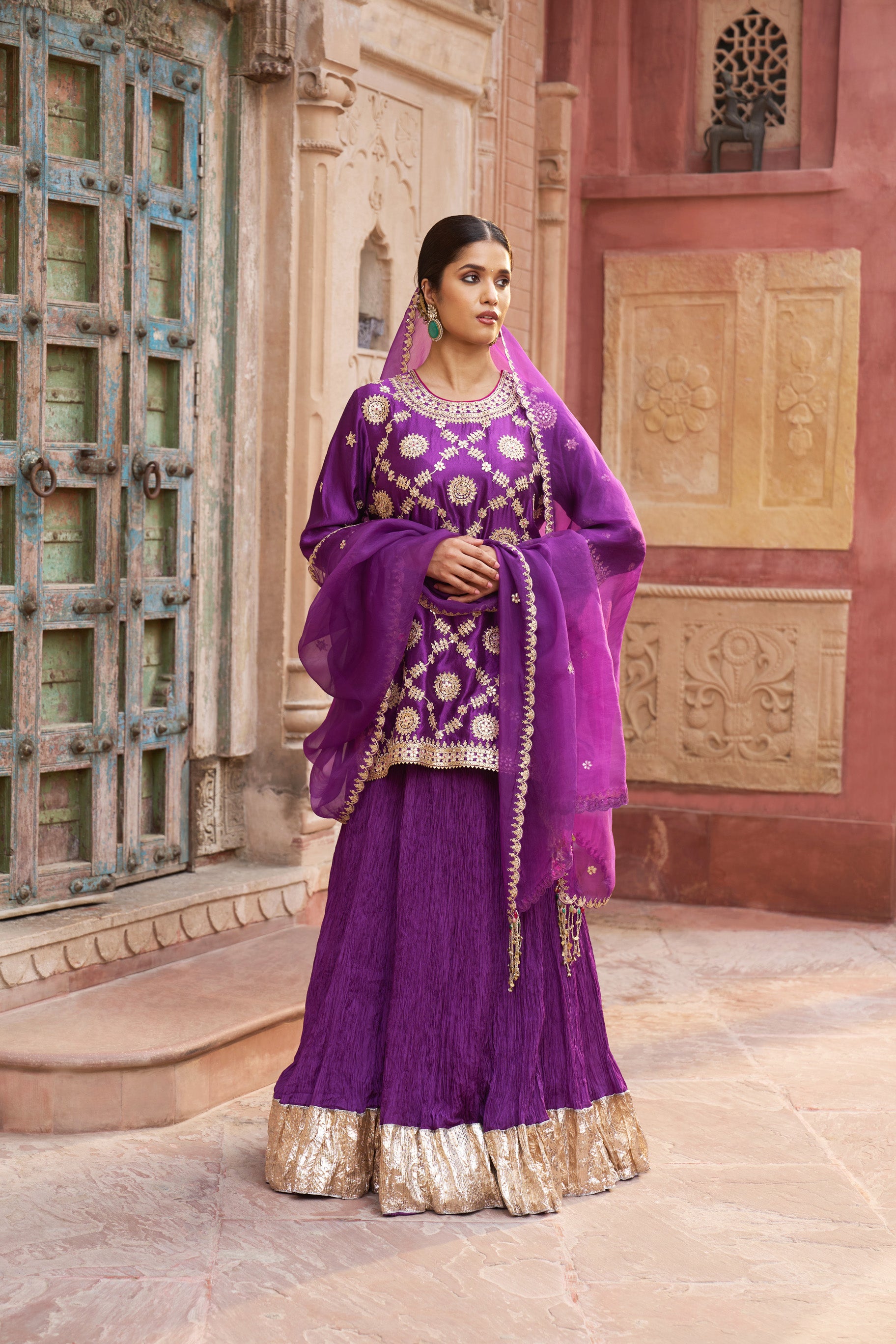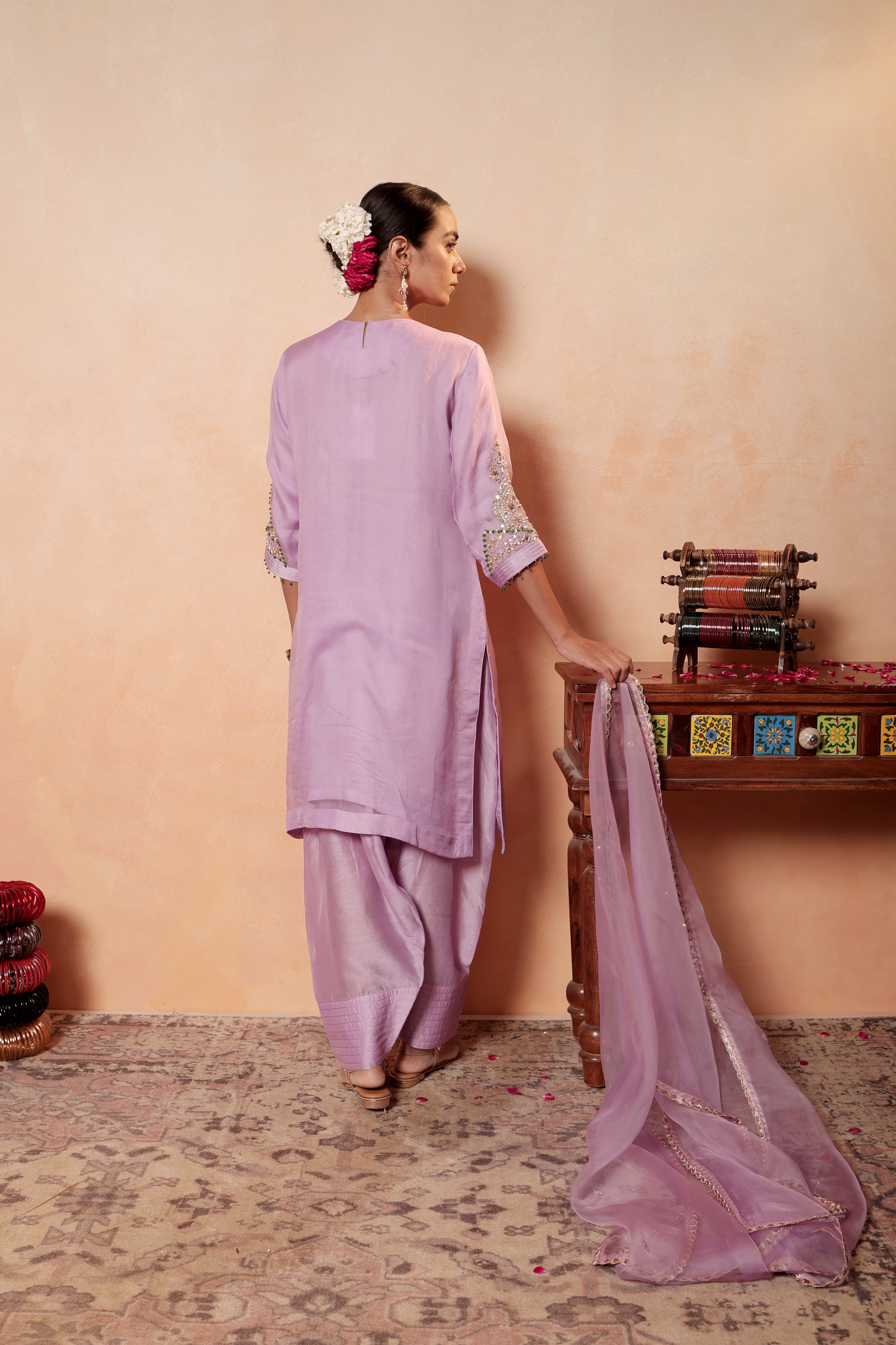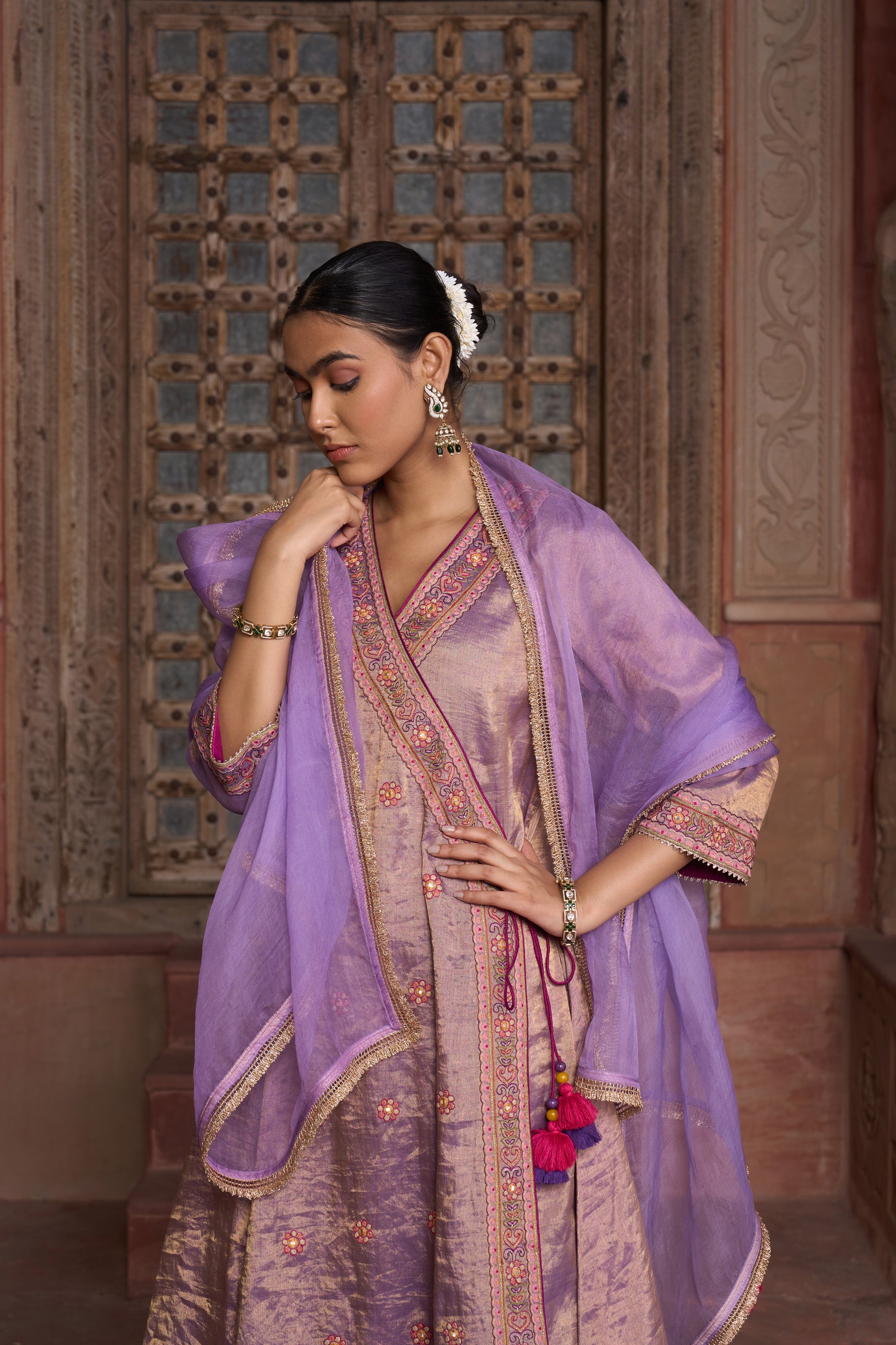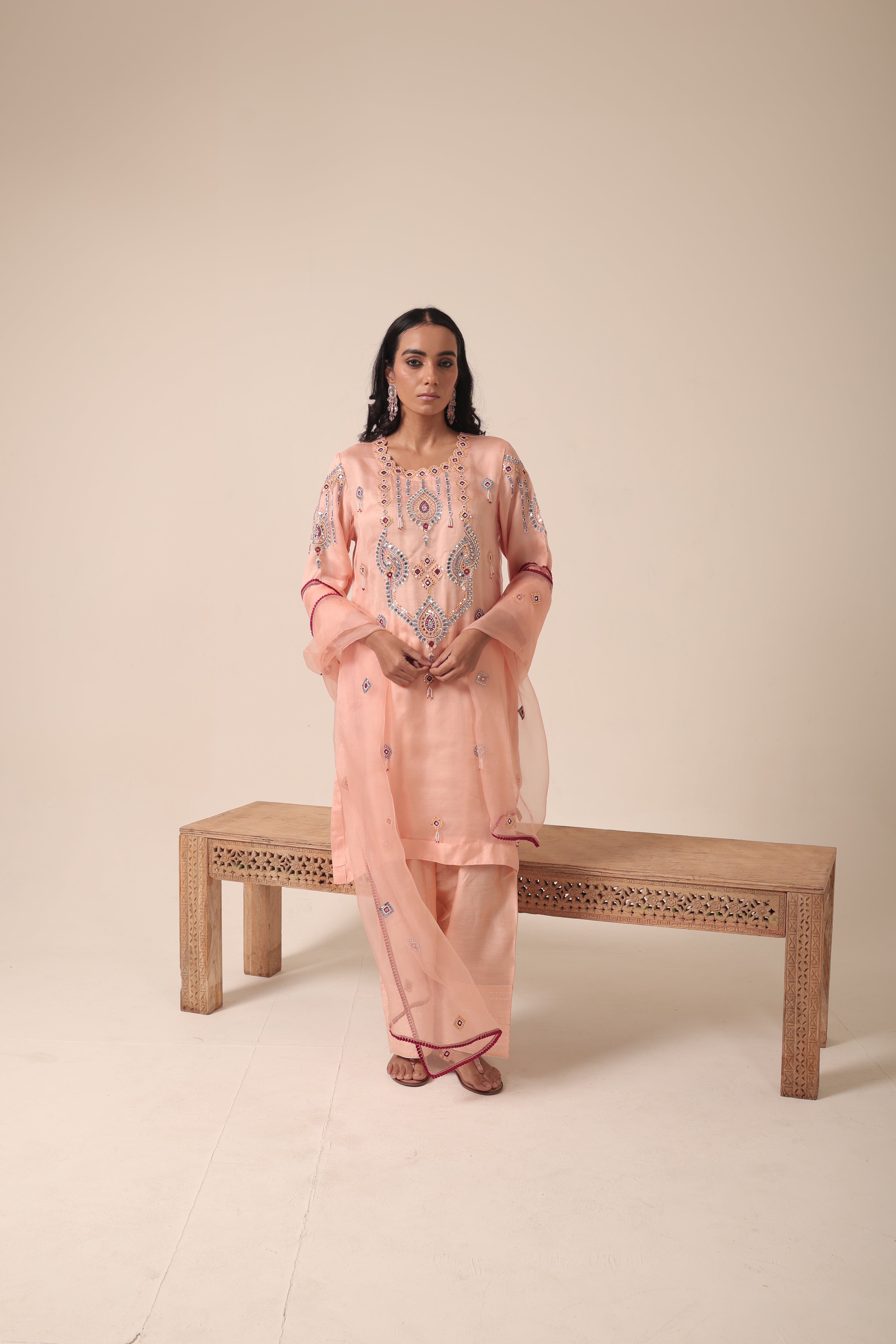 Green Silk Chanderi Kurta Set with Pink Dupatta