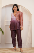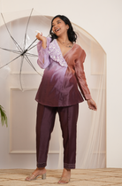 Lavender & Wine Ombre Silk Chanderi Co-ord Set - Bougainvillea